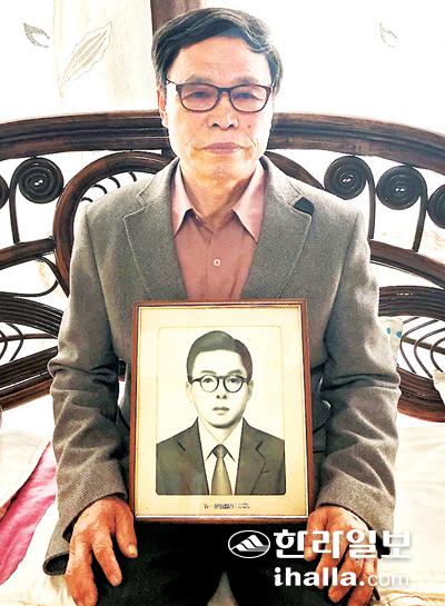2014년 6월, 희생자 유족 김명수(70·사진)씨가 아버지의 유해를 66년 만에 찾으면서 한 말이다. 김 씨의 아버지(당시 32세)는 4·3의 광풍이 몰아치던 1949년 지금의 제주제일고 인근 보리밭에서 농사일을 하던 중 군경에 붙잡혔다. 이후 불법 군사재판으로 사형을 언도받고, 같은 해 10월2일 정뜨르 비행장에서 총살됐다.