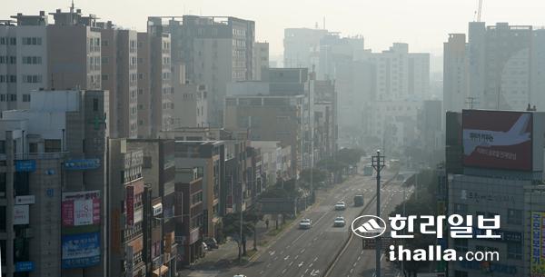 오존, 이산화질소, 미세먼지, 이산화황 등으로 인한 대기오염은 오염물질의 종류와 농도, 노출시간, 체내에 도달하는 정도에 따라 호흡기계에 영향을 미친다. 사진은 미세먼지가 심했던 최근 제주시내 전경. 사진 한라일보 DB