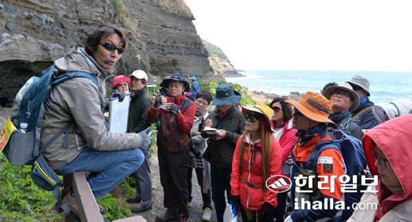 전용문 박사가 수월봉과 차귀도의 탄생과정에 대해 설명하고 있다. 강경민기자