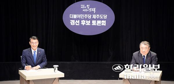 더불어민주당 제주도당 경선 후보 토론회가 11일 오후 JIBS제주방송에서 진행됐다. 이날 토론회는 민주당 도당과 두 후보의 사전 조율을 통해 1시간 동안 출마의 변과 핵심공약 소개 및 검증, 사회자 공통 질문, 상호토론, 마무리발언으로 진행됐다.