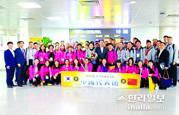한·중생활체육교류단이 12일 제주국제공항을 통해 입국하고 있다.