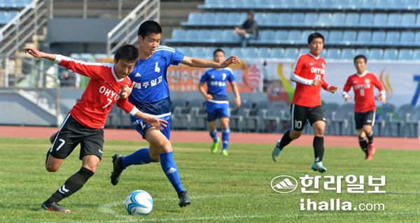 지난해 제주도민체전 고등부 축구 결승전에서 제주제일고등학교와 오현고등학교가 맞대결을 펼쳤다.