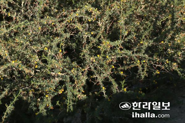 Caragana spinosa)들이 보인다. 몽골에는 골담초에 속하는 무리가 13종이 자라고 있다. 대부분은 건조에 적응한 종들이다. 건조지역 중에서도 모래, 자갈, 암벽 같이 극심한 건조 상태에서 산다. 그런데 이 가시골담초만은 강변이나 습지 주변에 자라는 것이다. 중앙아시아의 고립된 환경이야말로 이처럼 식물들이 다양하게 진화하는 곳이라는 점을 알 수 있게 한다.
