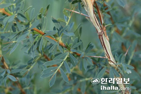 물가에 자라는 가시골담초(위)와 줄기가 변한 가시(아래).