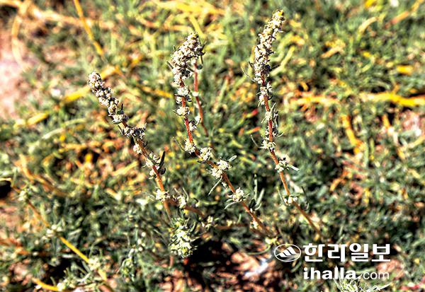 야영지 주변에도 꽃은 피어 있다. 처음으로 눈에 들어오는 식물은 마치 쑥처럼 보이는 식물이다. 우리나라엔 없는 속에 속하는 뿌리나무의 일종이다. 눈여름뿌리나무(코키아 프로스트라타, Kochia prostrata)라는 종이다. 학명 중 코키아는 독일의 식물학자 빌헬름 다니엘 조셉 코치(Wilhelm Daniel Joseph Koch, 1771-1849)를 기념하기 위해 쓰인 것이고, 프로스트라타는 '누운' 또는 '땅 위를 기는'의 뜻이다. 국명 눈여름뿌리나무는 이 식물이 뿌리나무이고 영어 일반명이 여름측백인 점을 고려해 명명했다.