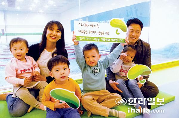 '우리家 나눔가족' 캠페인 1호 인터뷰 대상자인 안철훈 제이풀 어린이수영장 원장 가족 사진=초록우산재단 제공
