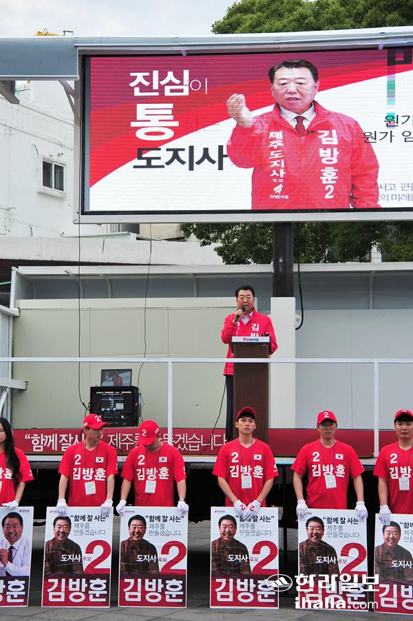 자유한국당 김방훈 제주도지사 선거 후보도 31일 제주시 동문로터리 분수대 광장 앞에서 출정식을 열어 표심 잡기 나섰다.