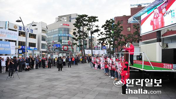 이어 "가장 청렴한 후보, 제주를 가장 잘 아는 후보가 누구이냐"면서 "오직 제주만을 생각하겠다. 기회를 주고 제주를 맡겨달라"고 호소했다.