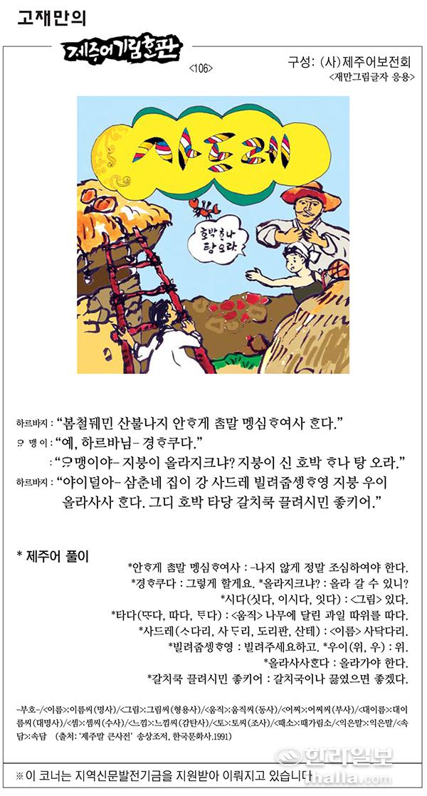 [고재만의 제주어기림혼판] 제주어 풀이(106)