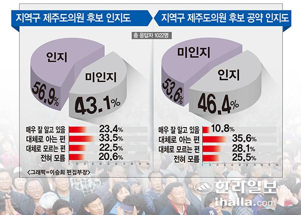 이번 여론조사 결과 제주도민 10명 중 4명 이상은 자신의 거주지에 출마한 도의원 후보를 모르는 것으로 나타났다.