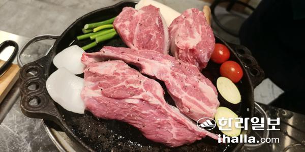 주방을 맡고 있는 최호균씨는 "아시다시피 제주지역에는 생고기가 못 내려온다. 우리 식당은 호주산 양고기를 쓰는데 급냉을 한 고기를 받으면 2~3일 정도 저온숙성 시킨다"고 설명했다. 최 씨는 이어 "불판을 전자레인지에 달군 뒤 열이 있는 상태에서 구워 손님들께 내어드린다. 겉이 빨리 익어야 고기 안은 육즙을 가득 머금어 부드러운 식감이 살아난다"고 덧붙였다.