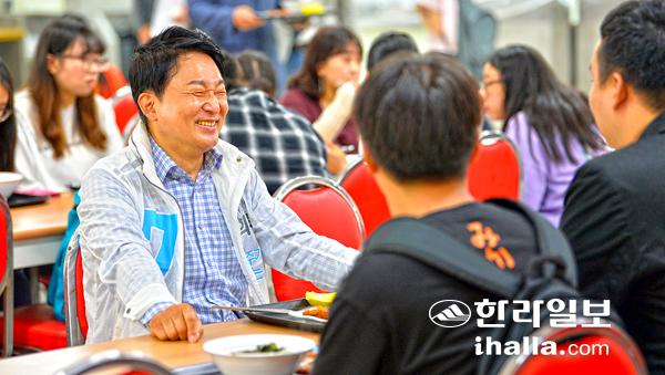 무소속 원희룡 후보는 제주한라대와 제주대학교를 잇따라 방문, 대학생들과 간담회를 가진데 이어 제주시 한경면과 한림읍·애월읍을 찾아 유세전을 펼쳤다. 강희만기자