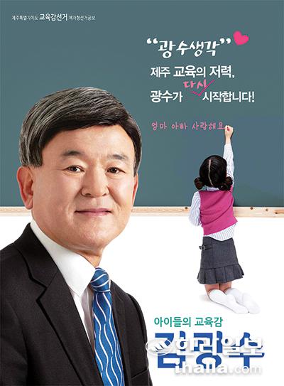 40여년의 세월을 교사로서 또, 교육행정가로 한 길을 걸어왔습니다. 제주교육의 내일을 고민하고 바라보며 오늘의 교육자가 되어 내일의 교육자로 살아가는 김광수 인생에 더 큰 희생과 봉사, 그리고 사랑을 실천할 수 있는 기회를 여러분이 주실 수 있습니다. 이 기회는 도민 여러분이 꿈꿔온 제주교육을 다시 시작할 수 있는 기회가 될 것입니다.