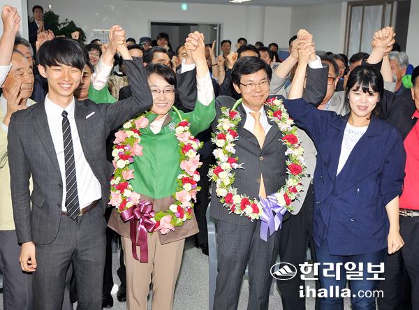 ▶첫 진보 교육의원·교육감=평교사와 전교조 지부장 등을 겪으며 제주교육의 변화 필요성을 절실히 느낀 당선인은 2010년 제주특별자치도의회 교육의원 선거에 나선다. 교육의원 직선제가 실시된 이후 제주에서는 처음으로 진보계열의 교육자가 후보로 나서며 이목을 끌었다. 주위의 비관적 전망에도 불구하고 당선돼 '제9대 제주도의회 교육의원'으로 이름을 올렸다.