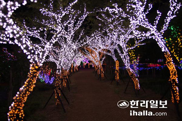 제주시 연동 한라수목원 가는 길에 위치한 수목원길 테마파크. 그 뒤쪽에 수목원길 LED공원이 있다. 지난해 9월 문을 연 수목원길은 테마파크와 LED공원 등으로 나뉘어 도민과 관광객들에게 다양한 볼거리와 즐길거리를 제공하고 있다.