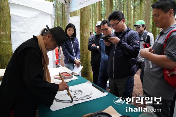 이날 김대규 화백은 달마, 소나무, 난 등 탐방객들의 원하는 그림을 현장에서 직접 그려 선물했다.