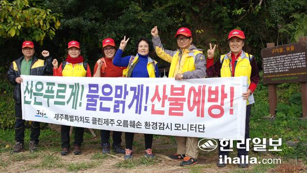 클린제주환경감시모니터단 오름이 활동 후 기념사진을 촬영하고 있다.