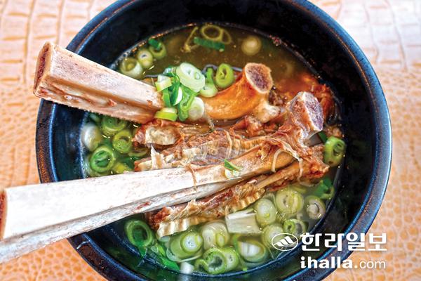 "소갈비뼈를 손질하고 나면 황기와 인삼, 삼지구엽초 등 10여가지 약재와 손수 만든 비법 간장, 볶음소금 등을 넣고 육수를 만듭니다. 매일 새롭게 육수를 만들지만 항상 같은 맛이 나올 만큼 맛에는 자신이 있어요."