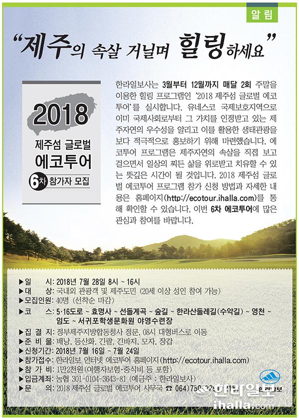 [알림] 2018 제주섬 글로벌 에코투어 6차 참가자 모집