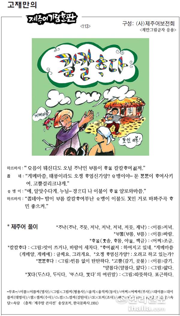 [고재만의 제주어기림혼판] 제주어 풀이(113)