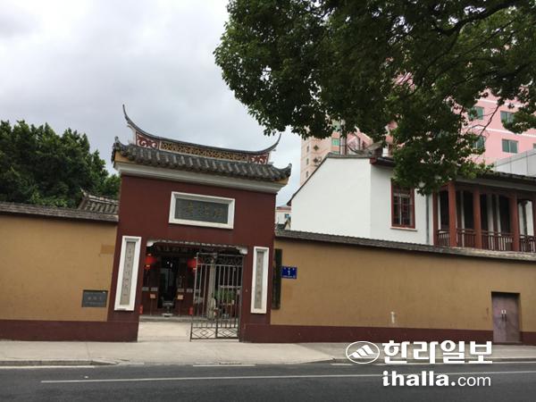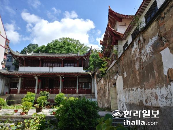 지난달 13일, 법해사는 복주 나산(羅山) 지역에 그 이름 그대로 있었다. 945년 건립된 목조 건축물인 법해사는 1000년 넘는 세월 동안 중수를 거듭하며 흥망을 반복했다. 흥복원(興福院)으로 출발해 송나라 때 법해사로 바뀌었고 12세기 초에 도교 사원으로 또 한번 명칭이 달라진다. 4채의 건물 중에서 2011년 2월 큰 화재로 대웅보전이 전소되는 아픔도 겪었다. 지금은 복건성·복주시불교협회사무실로 쓰이며 법해사의 명맥을 이어오고 있지만 관음각이 너무 낡아 붕괴 위험에 처한 모습이었다. 이방익에 얽힌 공간 하나가 스러질까 염려됐다.