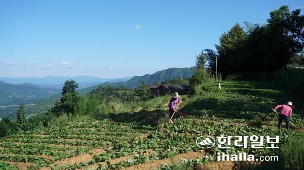 우계연합제전으로 향하는 길에 밭농사를 짓고 있는 농부들을 만났다.