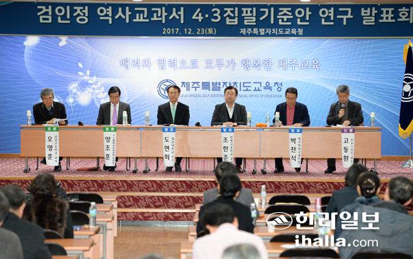 제주도교육청이 지난해 12월 23일 개최한 '검인정 역사교과서 4·3집필기준안 연구 발표회'모습. 한라일보DB