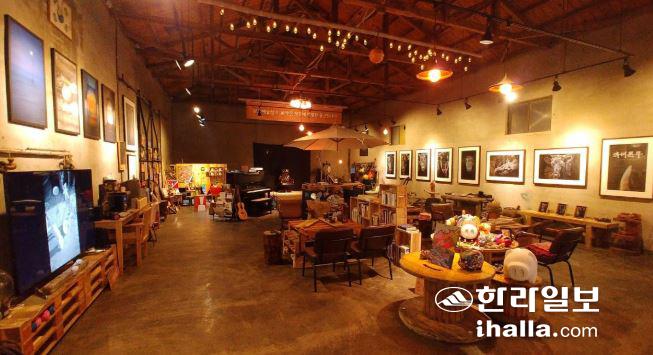 지난해 10월 문을 연 이곳에 들어서면 이색적 소품들이 한가득이다. 폐차장에서 구한 오래된 파란색 트럭은 애니메이션에서 금방 뛰어나온 것 같은 모습을 하고 있다. 여기에 이곳의 주인장인 김민수 사진작가의 '제주흑우'사진이 전시된 공간도 있다. 최근 이중섭창작스튜디오에서 첫 개인전을 열고 있는 팝아트 서승환 작가의 작품들이 전시된 공간도 있다.