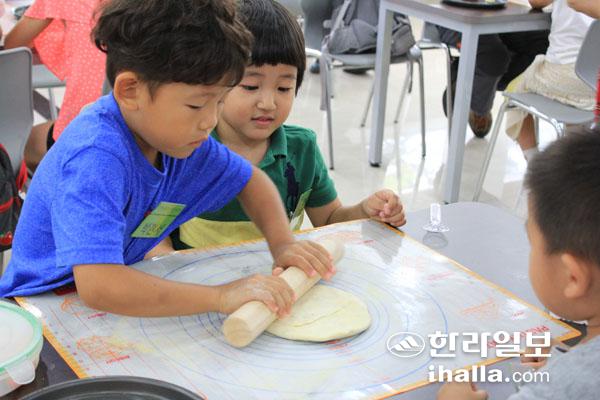 어린이들이 범산목장에서 체험프로그램을 즐기고 있다.