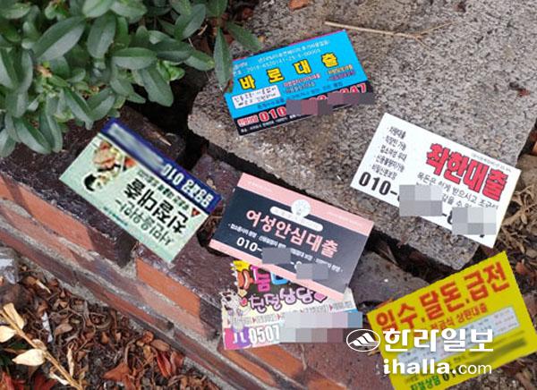 제주도내 곳곳이 성매매와 대출, 도박 등 불법 광고물로 얼룩지고 있다. 특히 이로 인해 피해를 입는 사례도 발생하고 있어 불법 광고물 수거는 물론 근절을 위한 대책이 필요하다는 지적이다.