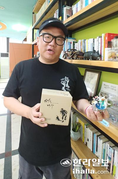 안광희 이사장이 '엄마의 바다 해녀양초 사업'을 통해 만들어진 양초를 들어 소개하고 있다. 사진=손정경기자