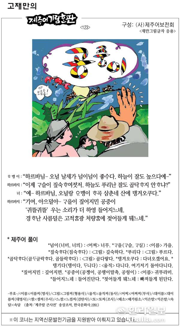 [고재만의 제주어기림혼판] 제주어 풀이(123)