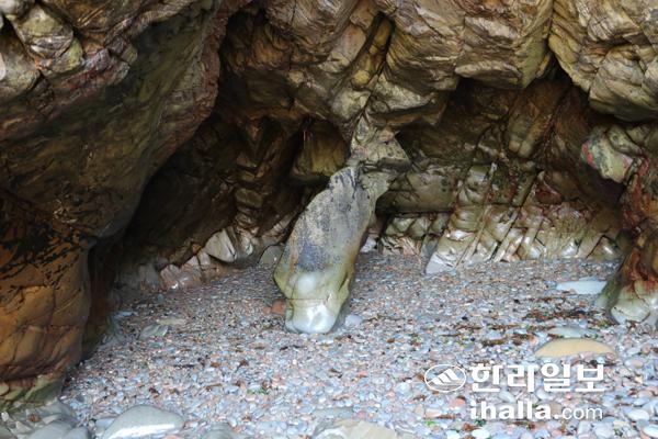 호도해변 남쪽 끝 해안에 형성돼 있는 '도둑놈형 동굴'.