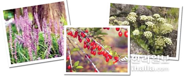 사진 왼쪽부터 갯기름나물 , 맥문동, 구기자