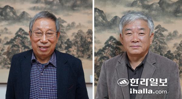 '평설 이방익 표류기'의 저자 권무일 작가(사진 왼쪽)와 제주국제대 심규호 석좌교수.