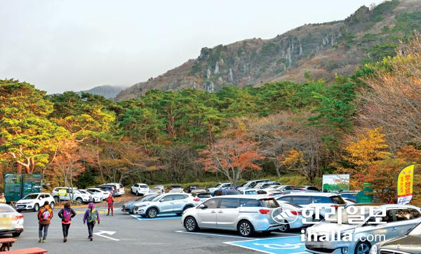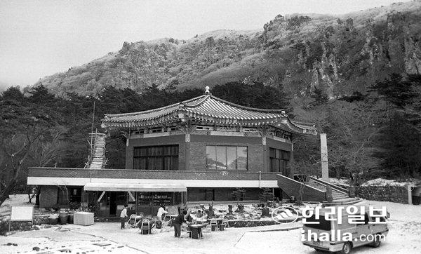 영실 팔각정이라고도 불리는 영실휴게소. 2011년 민간업체에서 운영되던 영실 휴게소가 옮겨간 뒤, 주차장이 조성됐다. 강희만기자·한라일보DB