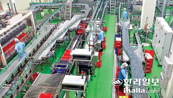 한일소주 공장에서 직원들이 제품을 생산하고 있다. 사진=강희만 기자 photo@ihalla.com