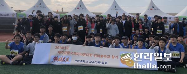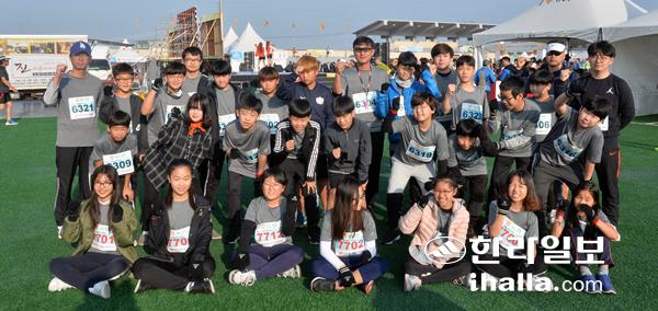 하귀일초등학교는 11일 제주시 조천운동장에서 '2018 제주감귤국제마라톤대회'에 학생 28명과 교사 13명을 포함한 총 41명이 참가했다. 강희만기자