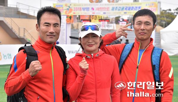 내년 10월 일본 아오모리현에서 열리는 히로사키·시라카미 애플마라톤에 참가할 제주 대표단이 12일 확정됐다. 주인공은(사진 왼쪽부터) 강한종(42·한라마라톤클럽), 오혜신(51·여·서귀포마라톤클럽), 진석형(42·한라마라톤클럽)씨다. 강희만 기자