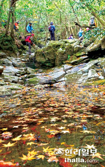 늦가을과 함께 알록달록 물드는 가을산만큼 예쁜 것이 또 있을까. 산과 자연을 좋아하는 이들에게 가을산행은 쉽게 뿌리칠 수 없는 유혹일 것이다. 지난 3일 투어에 참여하려는 탐방객들의 열띤 '호응' 속에 2018 제주섬 글로벌 에코투어의 열두 번째 탐방이 힘찬 발걸음을 내디뎠다. 이날 코스는 제2산록도로 치유의 숲 인근 자연 그대로 조성된 탐방로인 추억의 숲길에서부터 시작해 한라산둘레길과 영천을 거쳐 미악산(솔오름)에서 마무리된다.