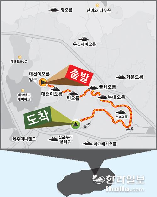 대천이오름 정상을 거쳐 민오름으로 향했다. 대천이오름과는 달리 가파른 경사의 민오름은 쌀쌀한 가을 날씨에도 참가자들에게 비지땀을 흘리게 했다. 한 참가자는 "40년 전에 받았던 유격훈련이 생각난다"며 "이것이 에코투어의 진정한 매력인 거 같다. 산 오르는 맛이 난다"고 말했다.