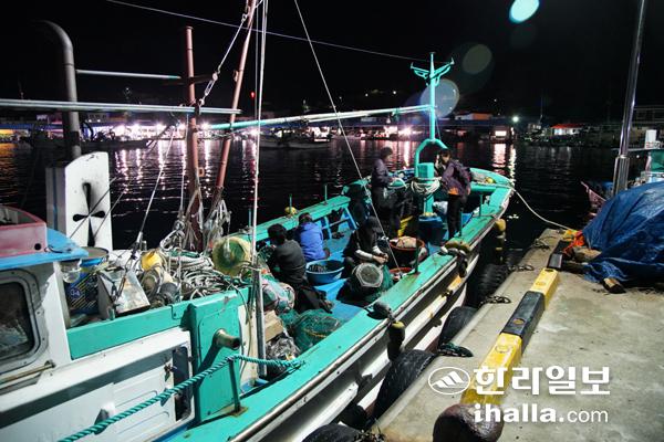 대진어촌계 소속 해녀들이 물질에 나서기위해 새벽 4시30분부터 대진항에 하나둘 모이고 있다.
