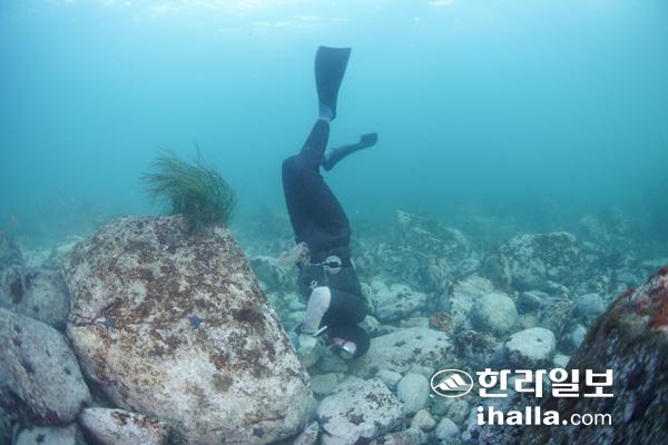 동쪽 최북단 어장 중 하나인 저도어장에서 물질을 하고 있는 해녀의 모습.