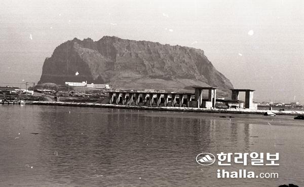카누경기장으로 탈바꿈한 한도교 갑문. 성산일출봉의 모습은 그대로이나 갑문의 모습과 주변 건물에서 세월의 변화를 느낄 수 있다.