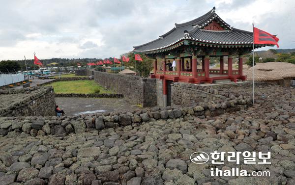 정의현성 남문의 읍성 복원·보수는 1986년부터 시작돼 1994년까지 진행됐다. 과거와 비교했을 때 말끔해진 모습이다. 강희만 기자 photo@ihalla.com