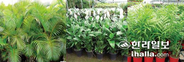 미세먼지를 막아주는 공기 정화식물인 아레카야자, 스파티필룸, 테이블야자. 사진=한라일보DB
