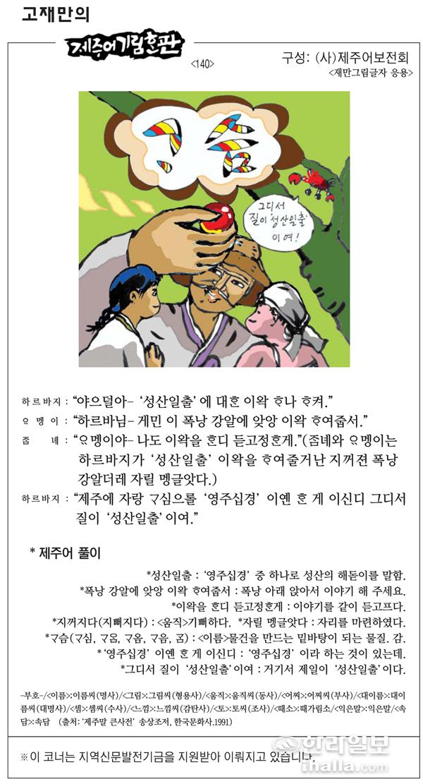 [고재만의 제주어기림혼판] 제주어 풀이(140)