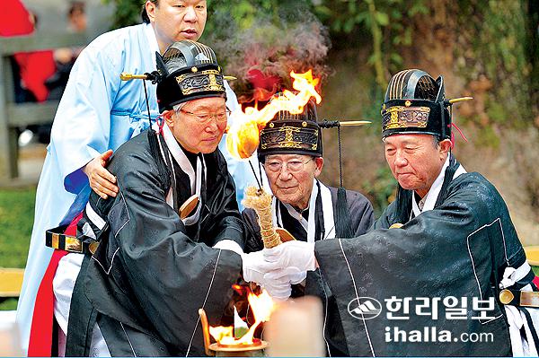지난해 삼성혈에서 열린 '들불불씨 채화체례'.