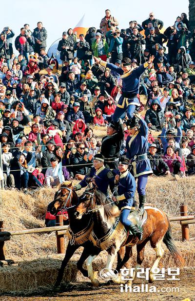 지난해 새별오름 일대에서 펼쳐진 마상마예공연.