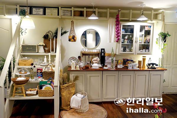 가드망제에 들어서자마자 보이는 복고풍 찬장과 배치된 소품이 냉장고가 없던 시절 가드망제의 모습을 재현했다.